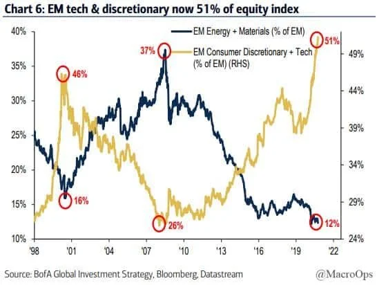 - I don’t know about you but I’m getting a bit tired of these “ratio” charts showing how undervalued energy, materials, commodities etc… are to growth and tech. So maybe this will be the last one I share. Though, I have to say, the macro picture is finally becoming supportive of a coming regime shift over the next 12-months.