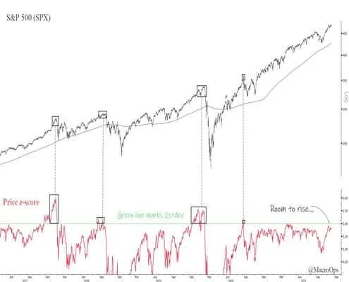 - One precondition for a larger top that hasn’t yet triggered is to see price make a 2stdev jump up (green line). A move to the 4,800-5k level would do the trick though.