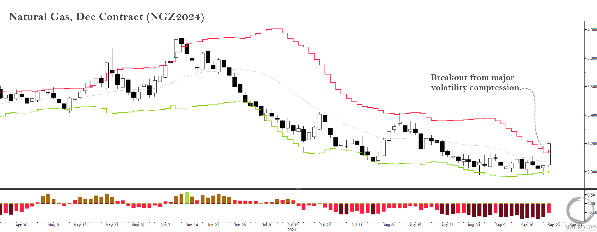 6. On Friday, December Natty broke out from a tight compression regime. As we know, compression regimes tend to lead to expansion regimes (i.e., trends). We currently have buy stops set to get long.