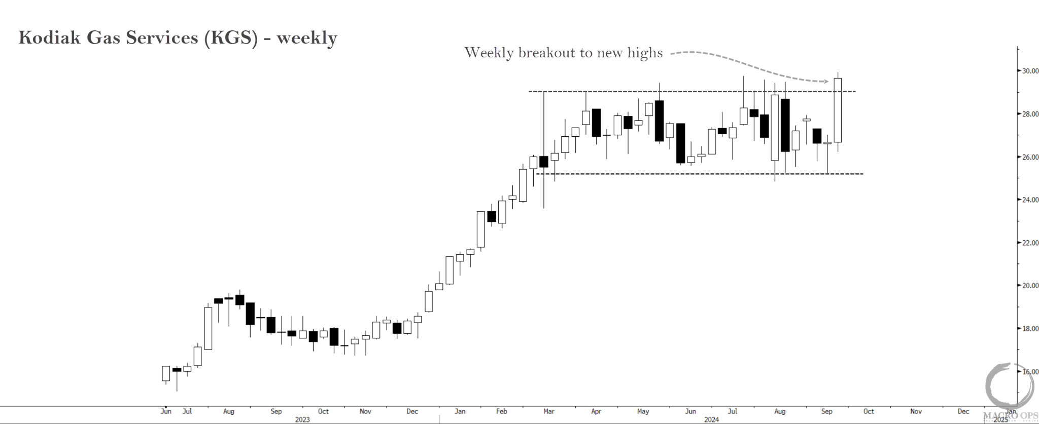 8. Besides playing the futures, we’ll be rolling over some DOTMs we own on a producer. We’re also revisiting this name, Kodiak Gas Services (KGS). I mentioned KGS in these pages sometime late last year. They’ve had a good run since then, and the weekly chart recently broke out from a multi-month sideways rectangle. You can find a VIC write-up on the company here. Brandon and I will be sharing our thoughts on the name with Collective members soon.