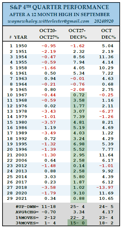 Since 1950, there have been 29 years in which a 12 Month High was set in September.