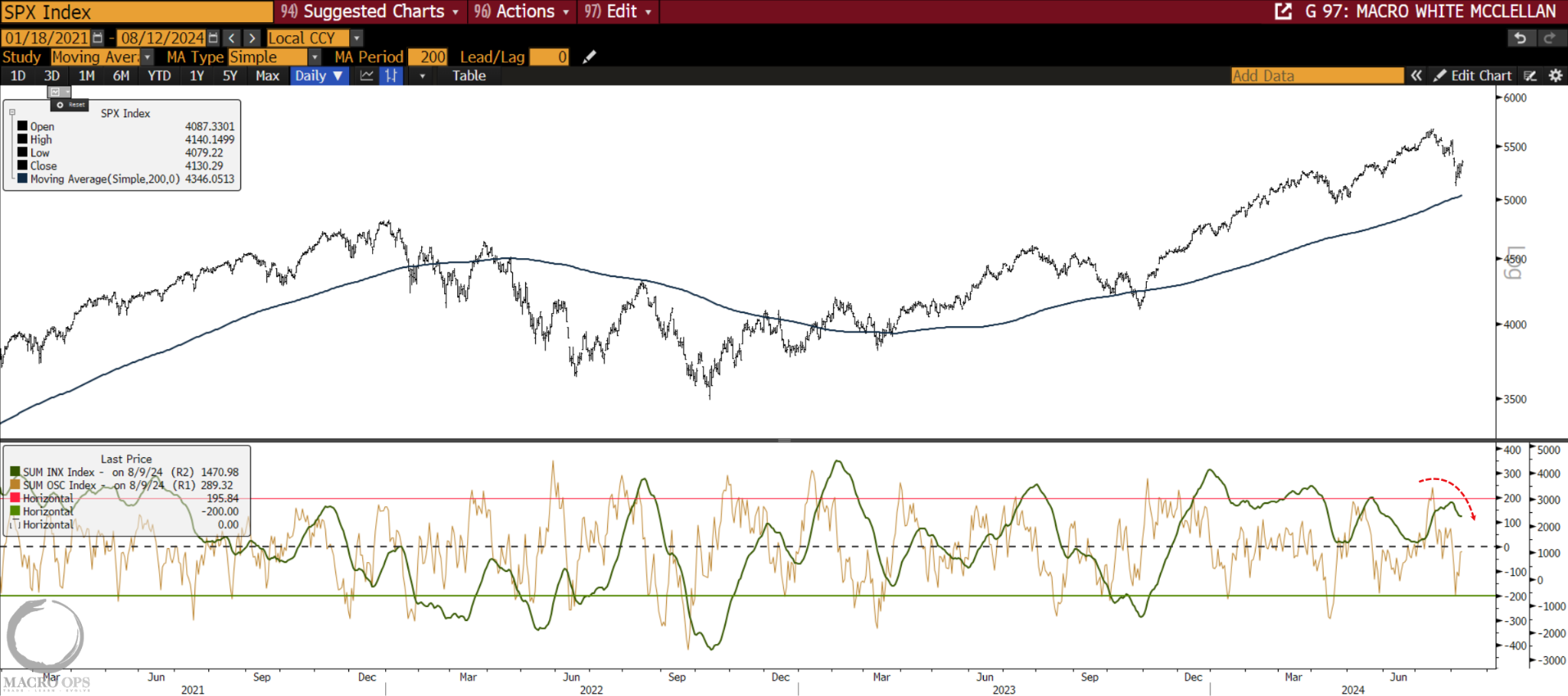 7. The McClellan Summation Index (green line) has rolled over from elevated levels. We’d like to see this one reset and turn up before we start aggressively pushing longs again.