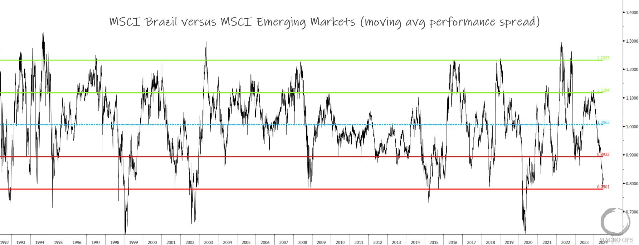 11. Interestingly, Brazilian relative equity performance against emerging markets is nearing extremes.