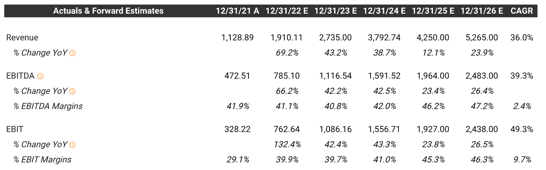 The company currently trades at ~11.5x NTM Sales and a 2.2% FCF yield. You’re paying for a 36% 5YR estimated revenue CAGR and near 50% EBITDA margins (see TIKR estimates below). Is it worth the multiple?