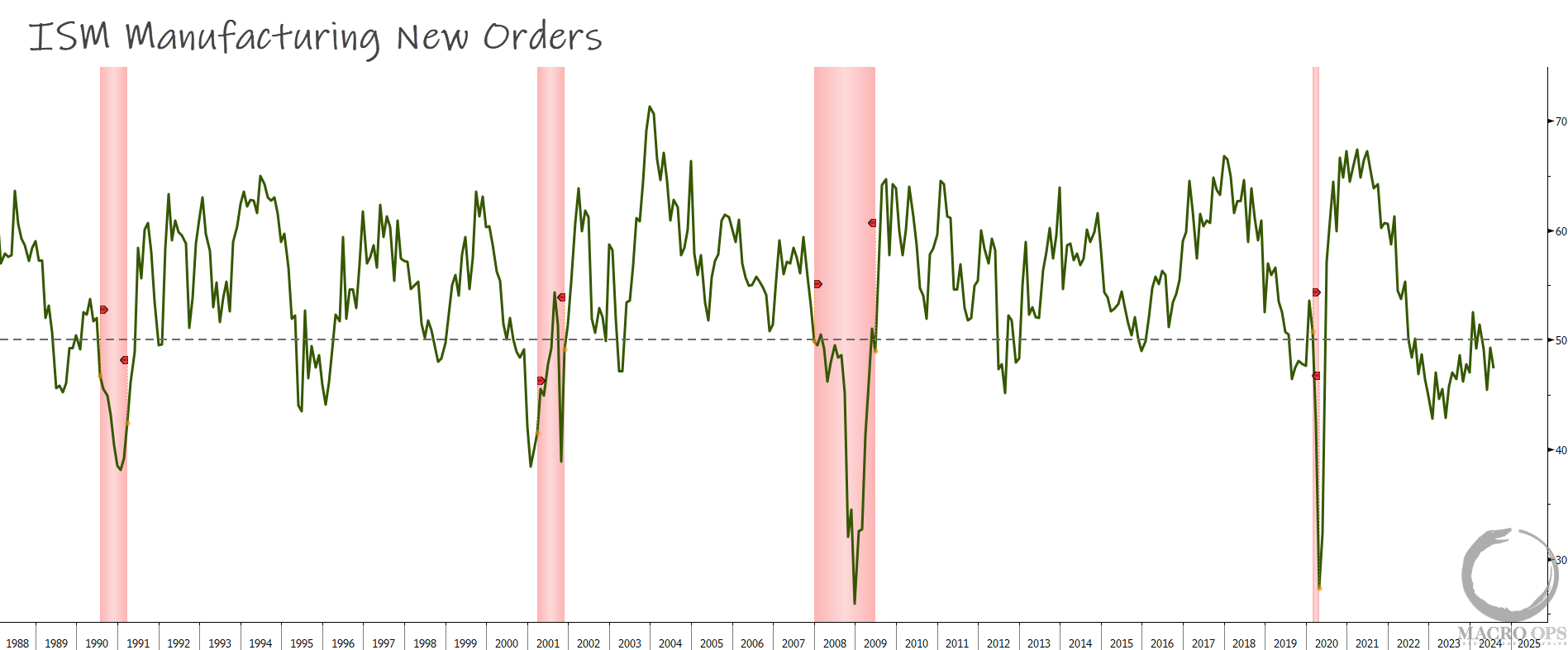 6. ISM New Orders are trading at recessionary levels. The poor readings in 2023 could be explained away as noise due to bullwhip effects from COVID and the goods to services convergence. But it’s difficult to make that same case today. This is now due to restrictive policy. And it means that the Fed is at risk of falling behind the curve should they not go -50bps next week.