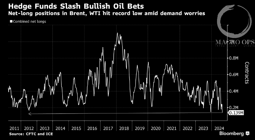 9. At the same time, hedge funds have cut their bullish bets on oil to record lows. Chart below shows net long positioning for both WTI and Brent.