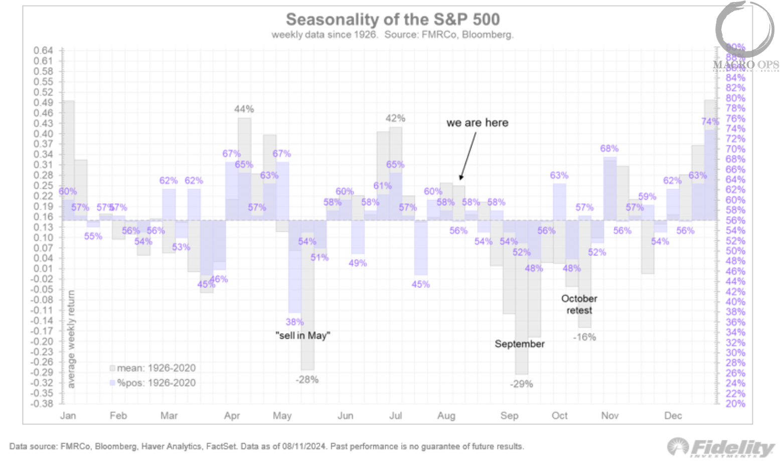 4. We’re moving into one of the weakest seasonality periods for the S&P (chart via @TimmerFidelity).