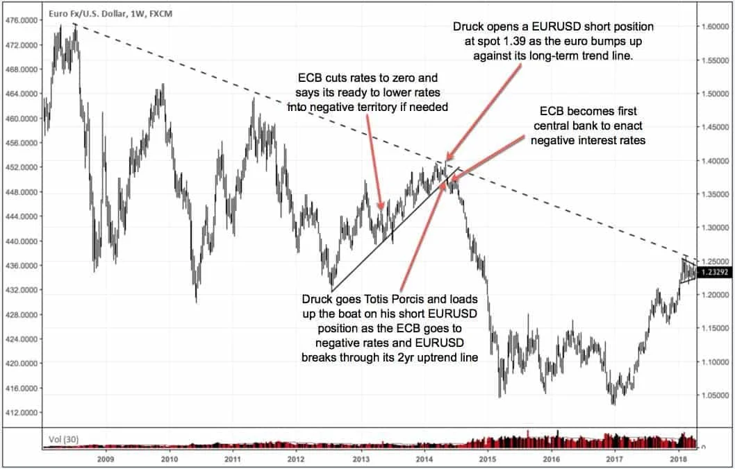 The chart below illustrates perfectly his short EURUSD trade.