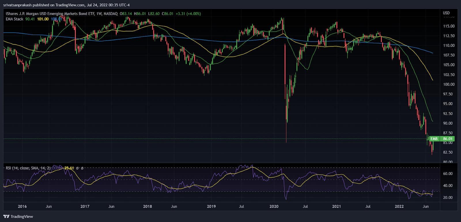 Interesting, the emerging market bond ETF is at levels below March 2020:
