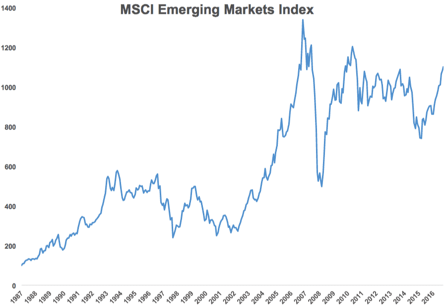 When analyzing emerging markets, it’s best to start in the 1980s. Some of today’s emerging markets crunch smells like the 80s. We then watched as Latin American countries barely survived a major debt crisis.