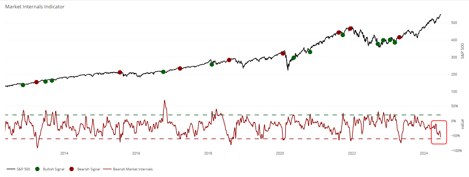 7. Our Market Internals Aggregator is within spitting distance of triggering a sell signal (red dots).